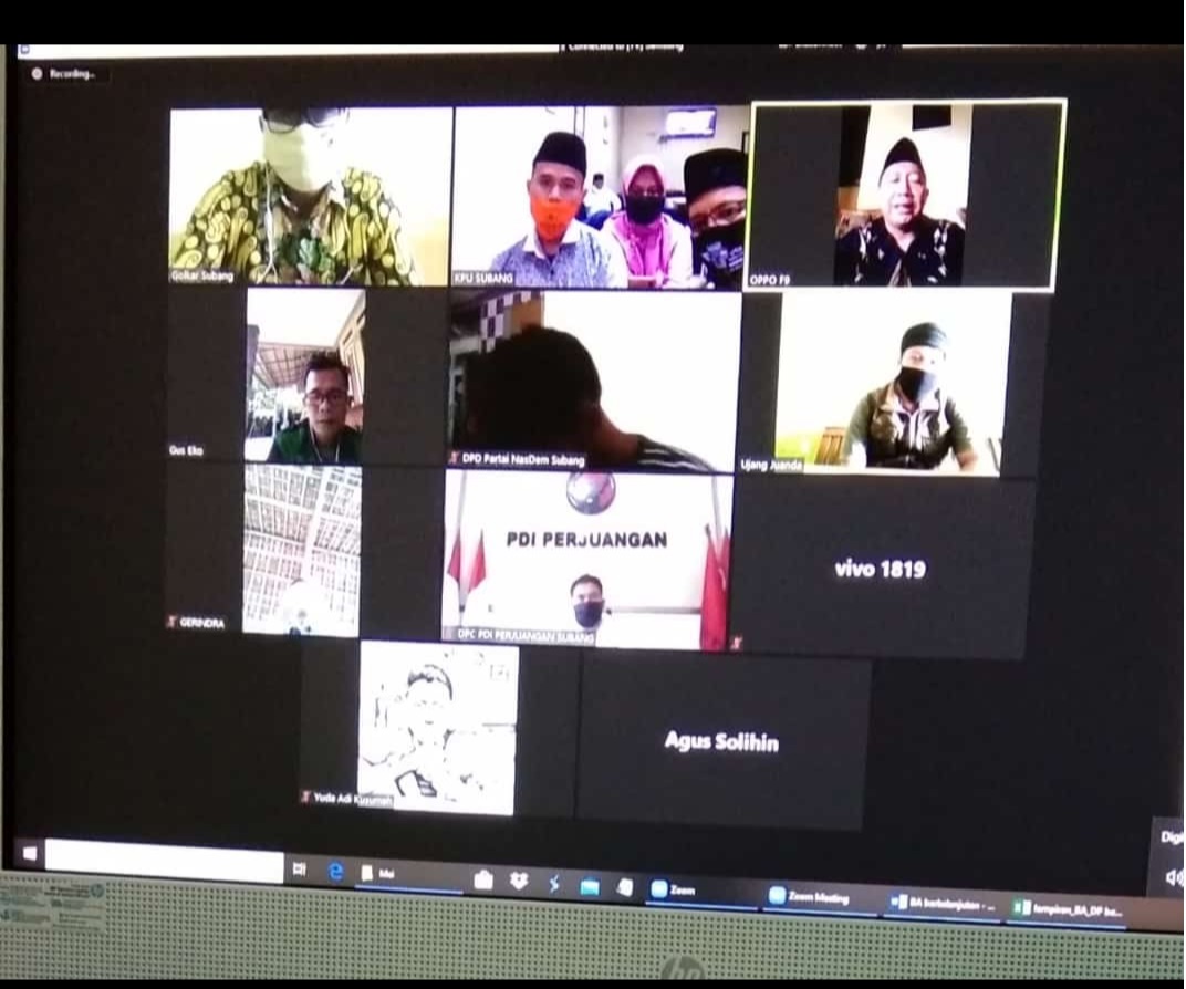 SUBANG - Jum’at, 29 Mei 2020, Ketua dan Koordinator Divisi Pengawasan Bawaslu Kabupaten Subang, Drs. Parrahutan Harahap dan Imanudin, SH.i melakukan pengawasan dalam rangka menghadiri undangan Rapat Pleno Rekapitulasi Pemutakhiran Daftar Pemilih Berkelanjutan (DPB) Tahun 2020 ke-2 Tingkat Kabupaten Subang yang dilaksanakan oleh KPU Kabupaten Subang. Rapat Pleno diselenggarakan melalui Video Confrence via Aplikasi zoom.