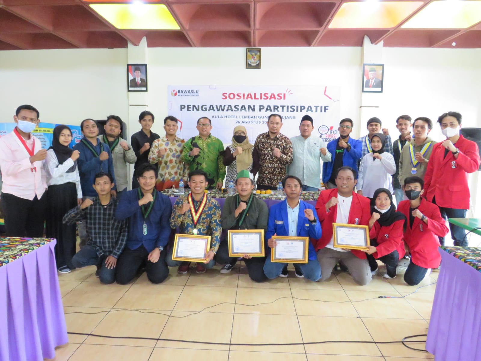 Bawaslu Subang - Pimpinan dan Jajaran Sekretariat melaksanakan Sosialisasi Pengawasan Partisipatif di Aula Hotel Lembah Gunung Kujang.(26/8/2022).