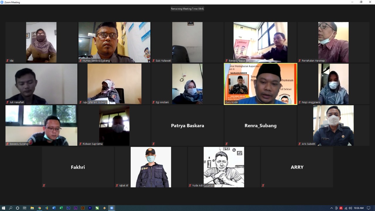 Subang, 12 April 2021 - Bawaslu Kabupaten Subang. Dalam rangka peningkatan SDM dilingkungan Bawaslu Kabupaten Subang, kegiatan SIMADU ( Serial Peningkatan Kapasitas Individu) dilaksanakan oleh Divisi Humas Bawaslu Kabupaten Subang dengan Nara Sumber Kordiv Hukum, Humas dan Datin Cucu Kodir Jaelani peserta adalah jajaran kesekretariatan Bawaslu Kabupaten Subang.