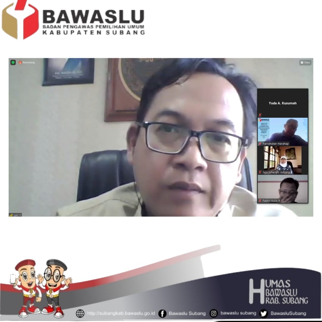 Narasumber pada acara kali ini adalah Kordiv Pengawasan dan Hubungan antar Lembaga Bawaslu Provinsi Jawa Barat Zaki_hilmi dan Kordiv Penyelesaian Sengketa Bawaslu Kabupaten Subang Jecky Johari.