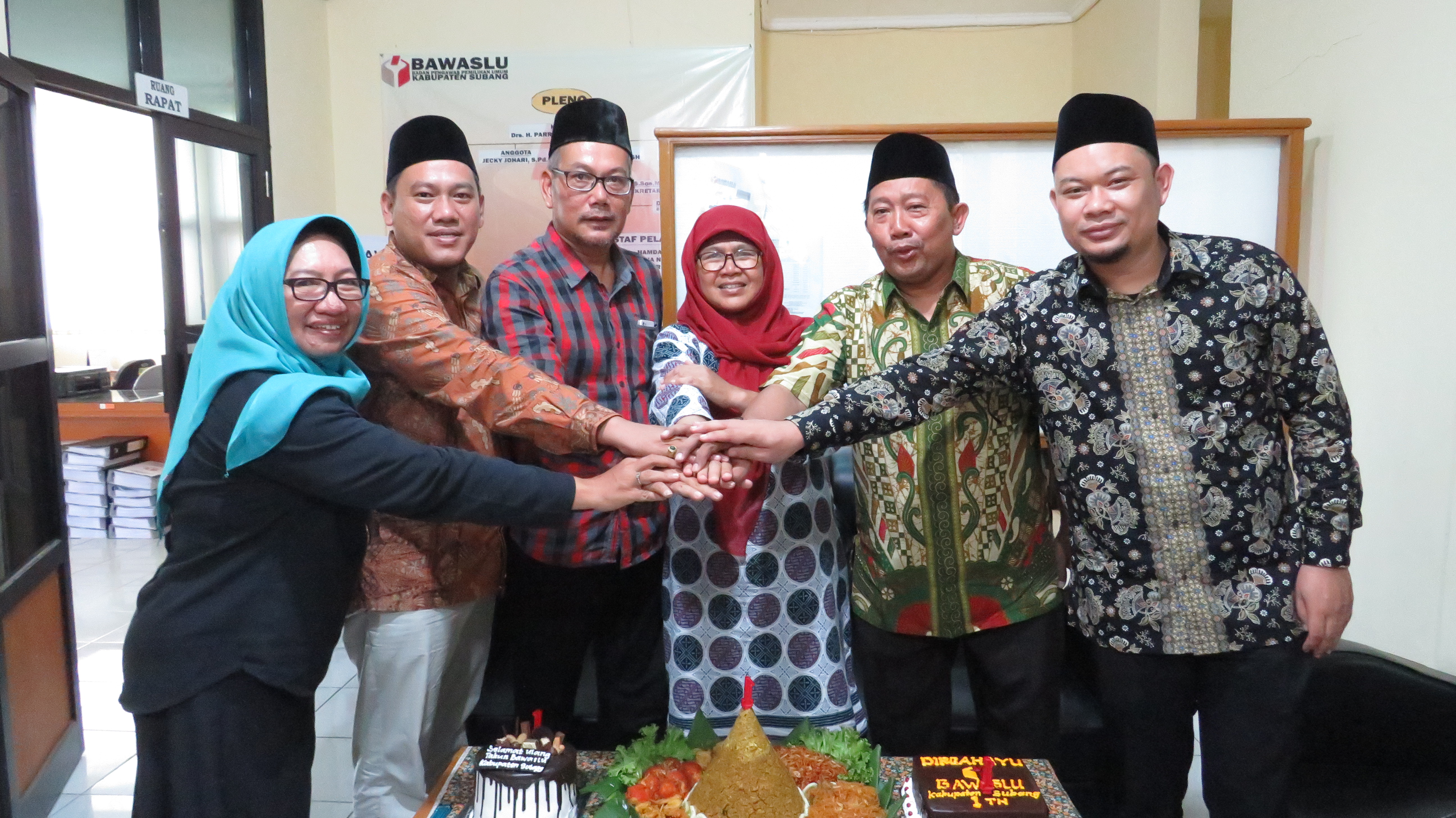 Subang, 15 Agustus 2019. Ketua, Anggota, Korsek dan Jajaran Kesekretariatan Bawaslu Kabupaten Subang melakukan Perayaan ulang tahun KE-1 di Sekretariat Bawaslu Kabupaten Subang.