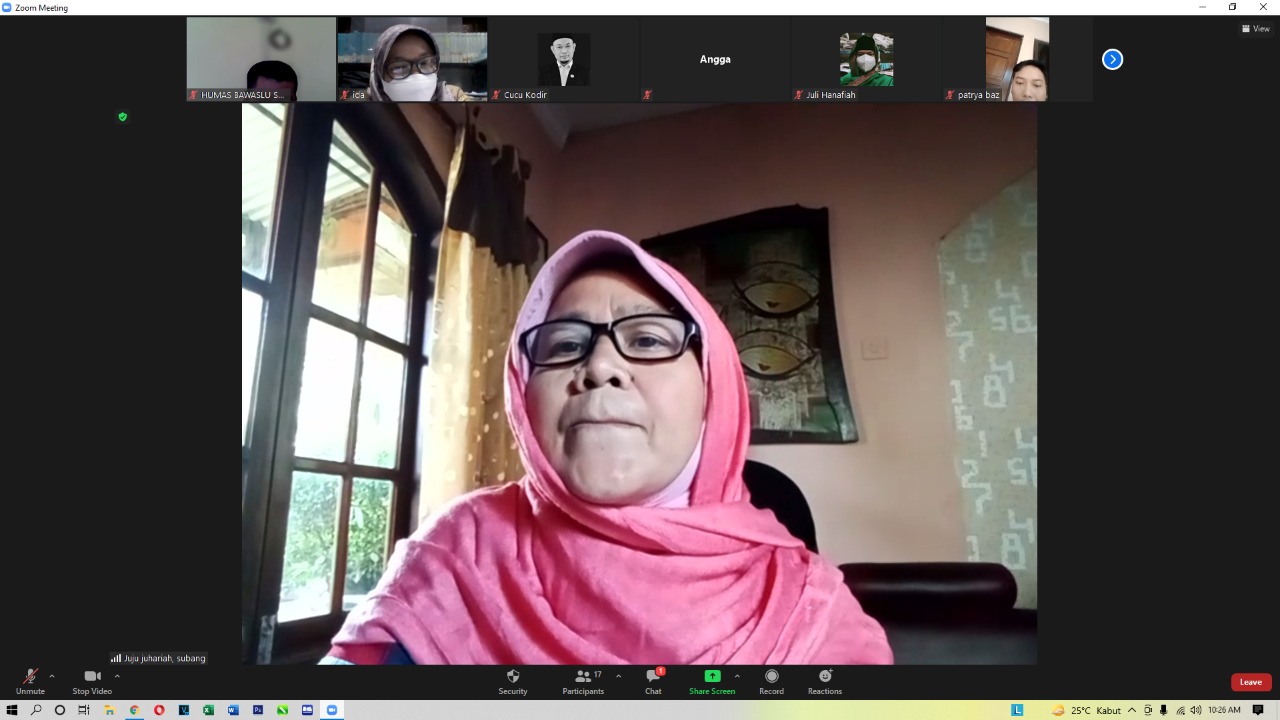 Senin,26/7/21. Bawaslu Kabupaten Subang. Ketua, Anggota dan jajaran Sekretariat mengikuti kegiatan serial Peningkatan Kapasitas Individu (SIMADU)seri 21 melalui aplikasi Zoom (Daring). Dalam kegiatan tersebut membahas terkait Mekanisme Kajian Awal Menurut Perbawaslu No 7 tahun 2018 tentang penanganan temuan dan laporan pelanggaran pemilihan umum.