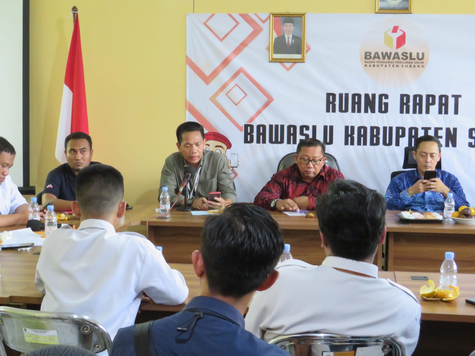 Subang. Divisi Penanganan Pelanggaran Bawaslu Kabupaten Subang menyelenggarakan RDK (Rapat Dalam Kantor) dengan tema "Teknik Penyusunan Hasil Investigasi & Berita Acara Klarifikasi". Hadir dalam kesempatan tersebut seluruh Komisioner Bawaslu Kabupaten Subang, H. Yusup Kurnia (Anggota Bawaslu Prov. Jawa Barat), Dede Darso (Anggota Satreskrim Polres Subang), dan Endang Supriadi, (Ketua DPC Peradi Kab. Subang).