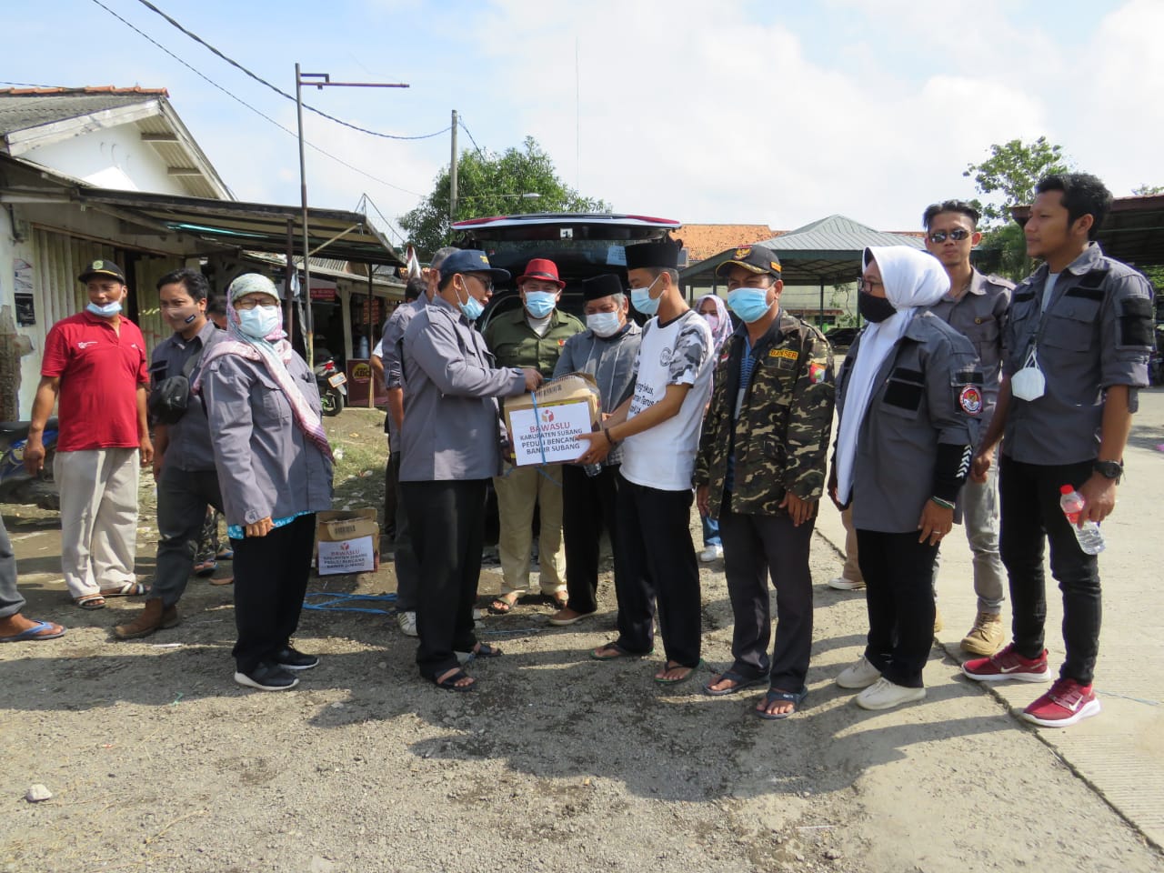 Subang, 12/02/2021. Ketua, Anggota dan Kordinator Sekretariat Bawaslu Kabupaten Subang memberikan sumbangan kepada para Korban banjir yang ada di wilayah Subang Pantura. Bantuan disalurkan kepada perwakilan pengurus NU yang ada di Kec. Pamanukan dan diwakili oleh Bpk. Dr. Ekasakti Padang Sumbar dan Bantuan diserahkan langsung oleh Ketua Bawaslu Kab. Subang.