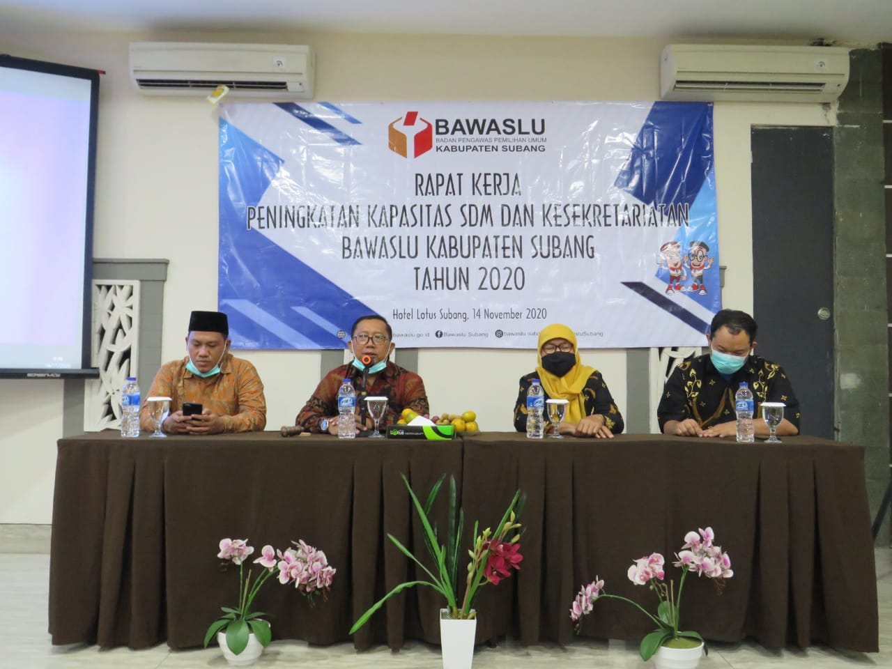Subang, 14/11/2020. Bawaslu Kabupaten Subang mengadakan Rapat Kerja Penigkatan SDM dan Kesekretariatan yang diikuti oleh Ketua, Anggota serta seluruh jajaran Staf PNS dan PPPNS Bawaslu Kabupaten Subang yang bertempat di Hotel Lotus Subang. Narasumber yang hadir dalam rapat tersebut adalah Anggota Bawaslu Provinsi Jawa Barat Drs. H. Wasikin Marzuki