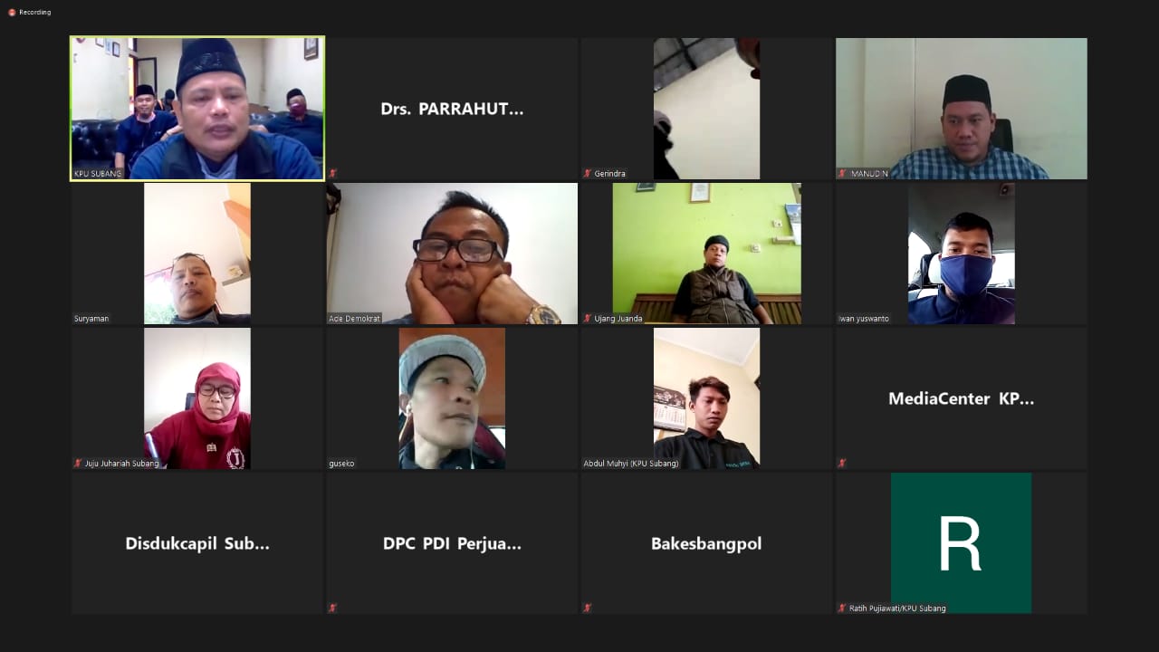 SUBANG - Jum’at, 10 Juni 2020, Ketua beserta anggota Bawaslu Kabupaten Subang melakukan pengawasan dalam rangka menghadiri undangan Rapat Pleno Rekapitulasi Pemutakhiran Daftar Pemilih Berkelanjutan (DPB) Tahun 2020 ke-4 Tingkat Kabupaten Subang yang dilaksanakan oleh KPU Kabupaten Subang. Rapat Pleno diselenggarakan melalui Video Confrence via Aplikasi zoom.