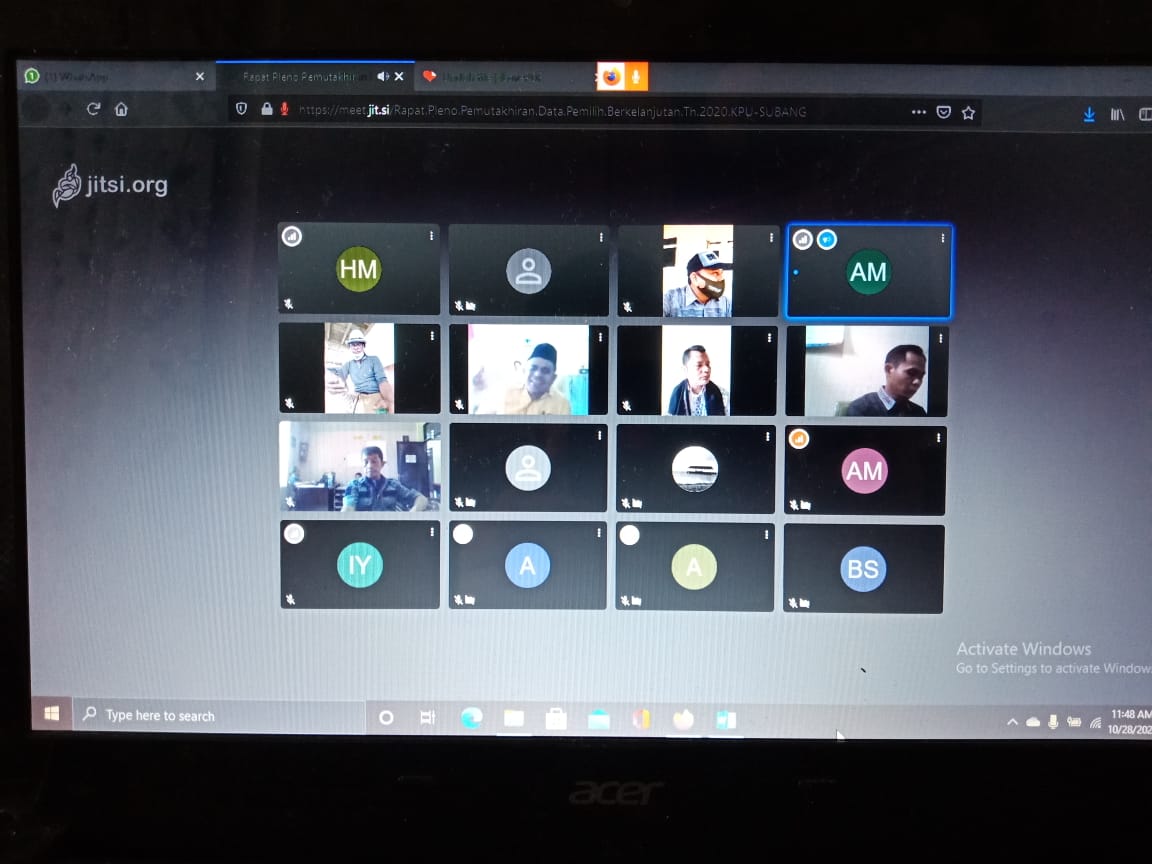 SUBANG - Rabu, 28 Oktober 2020, Ketua beserta anggota Bawaslu Kabupaten Subang melakukan pengawasan dalam rangka menghadiri undangan Rapat Pleno Rekapitulasi Pemutakhiran Daftar Pemilih Berkelanjutan (DPB) Tahun 2020 periode bulan Oktober Tingkat Kabupaten Subang yang dilaksanakan oleh KPU Kabupaten Subang. Rapat Pleno diselenggarakan melalui Video Confrence via Aplikasi Jitsi.