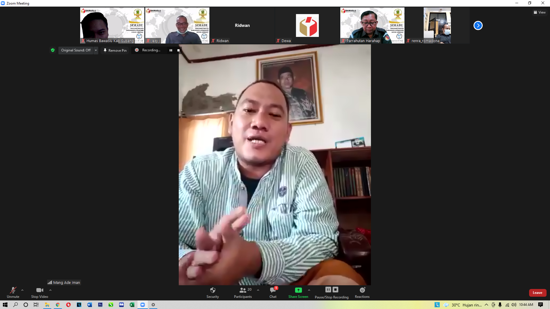 senin,23/8/2021. Ketua, anggota dan jajaran Sekretariat Bawaslu Kabupaten Subang melaksanakan kegiatan SIMADU dengan tema Rencana strategi dan kerjasama antar lembaga, bertempat di sekretariat Jl. Palabuan No.9 Subang.