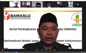 Bawaslu Kabupaten Subang menjadi tuan rumah Pelaksanaan kegiatan Safari Diskusi Daring (SADIDA) yang dilaksanakan secara online (Daring) dan diikuti oleh Bawaslu Kabupaten/Kota Se-Jawa Barat.