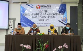 Subang, 14/11/2020. Bawaslu Kabupaten Subang mengadakan Rapat Kerja Penigkatan SDM dan Kesekretariatan yang diikuti oleh Ketua, Anggota serta seluruh jajaran Staf PNS dan PPPNS Bawaslu Kabupaten Subang yang bertempat di Hotel Lotus Subang.